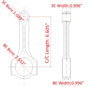 Marca: uragano Motore: Honda K24Tipologia parte: barre di collegamentoCentro per centrare la lunghezza: 151,99 mm / 5.984 "GRANDE FINE Diametro del foro: 51,006mm / 2.008 "Larghezza di grande fine: 19.8mm / 0.780 "Piccolo diametro del foro: 22.015mm /0,867 "Larghezza fine: 19.8mm / 0.780 "Stile del fascio: fascio di H