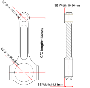 Brand: Hurricane Engine: Honda Acura RSX 2.0 VTEC K20 K20A K20A2Part Type: Connecting RodsCenter to Center Length: 138.98mm/5.472"Big End Bore Diameter: 51mm/2.008"Big End Width: 19.8mm/0.7795"Small End Bore Diameter: 22mm /0.8661"Small End Width: 19.8mm/0.7795"Beam Style: H-beam