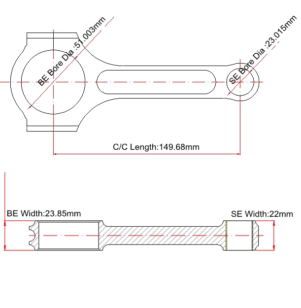 Все кованые шатуны Honda F22C полностью обработаны на современном станке с ЧПУ. Для каждого стержня поверхности полируются и дробятся для превосходной прочности; Изготовлен из высококачественной 4340 авиационной хромированной стали EN24; Каждый стержень был спроектирован, изготовлен и проверен на повышенную прочность, вес соответствует 2 граммам, построен с I-Beam Shape для дополнительной жесткости.