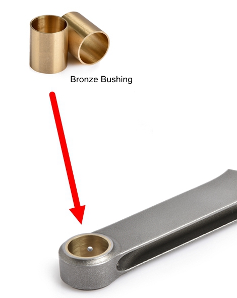 Высокопрочные бронзовые втулки, установленные в малом конце для плавающего пальца, и высококачественные дюбели, установленные в заглушке большого конца для точного выравнивания.